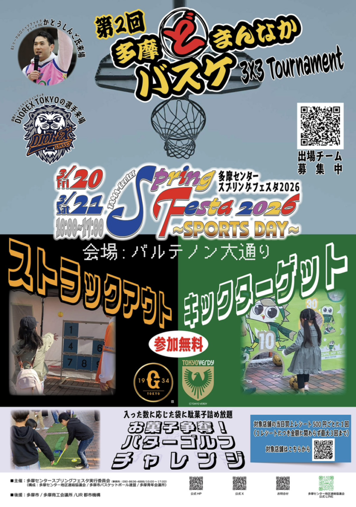 3月20日、21日に多摩センター スプリングフェスタ2026 にて開催される第2回多摩どまんなかバスケのMCを昨年の第1回に引き続き担当することになりました。